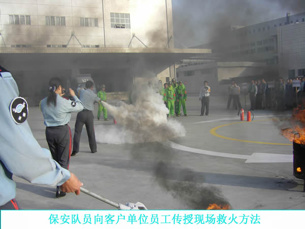 在保安员培训上,保安员需接受为一个月的封闭式训练,着力培训保安员文明执勤时的礼节礼貌,仪容仪表,处事技能等保安业务知识,重点加强消防培训和军事技能训练,提高保安员对突发事件的预防与应对能力。